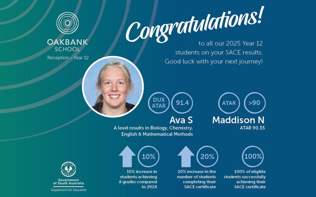 We also celebrated a 10% increase in students achieving A grades compared to 2024, a 20% increase in student completing their SACE certificate and a 100% rate of eligible students successfully achieve their SACE certificates!